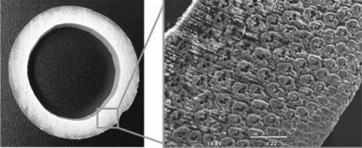 竹子是一種最典型天然的功能梯度材料。 從結構上看,竹子是一種纖維增強復合材料,由兩種主要的組織組成: 作為增強作用的纖維(維管束) 和作為基體的薄壁細胞,這些纖維有很強的剛性,可以與鋼筋媲美。為了識別竹材莖稈中增強纖維的分布特性與竹稈抗彎剛度之間的關系,研究人員研究了竹材橫截面中的纖維分布。